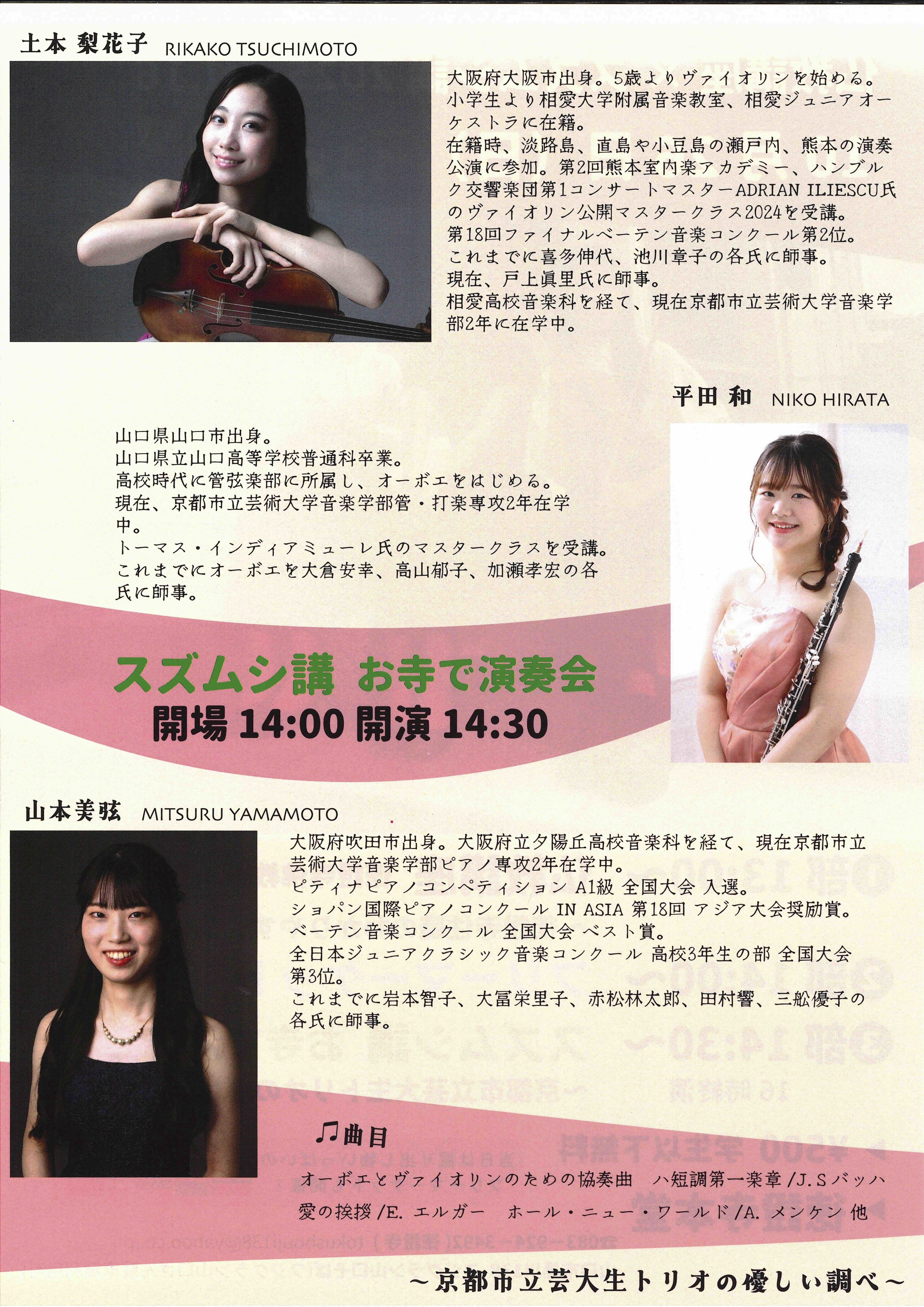 スズムシ講2025 お寺で演奏会 〜芸大生トリオの優しい調べ